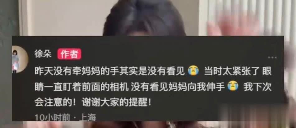 原来徐朵当天在活动中不是故意不牵着母亲的手,而是因为没看见。